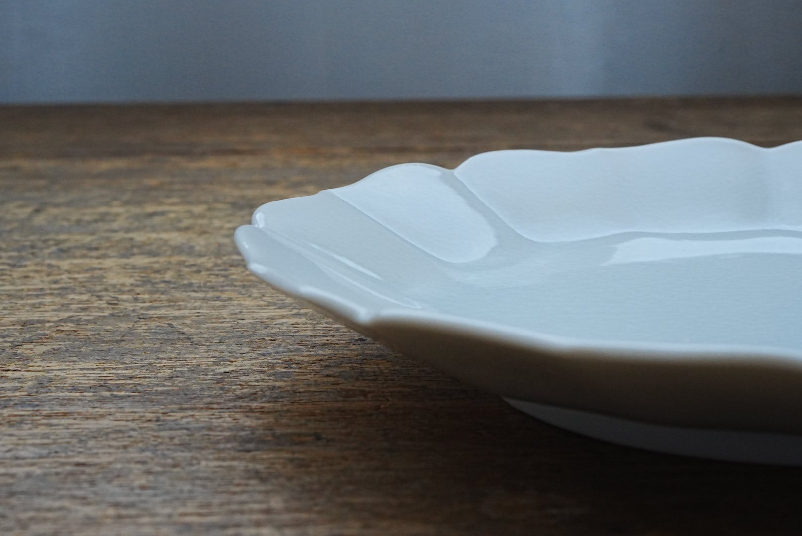 九谷焼の有名な五彩色絵の磁器とは違う、器本来の美しい形にも目が届くよう無地にした「KATA KUTANI / 型九谷」。窯元の型から生まれた隅切角、ツバ形、八角モッコ、菊、桔梗、稜花などの昔ながらの形を、絵を入れない釉に細かいひびの入った「貫入」だけにすることで豊かな表情と落ち着いた雰囲気のあるラインに仕上げています。形を楽しめ、盛り付ける料理が映える普段使いの九谷の器をお楽しみください。