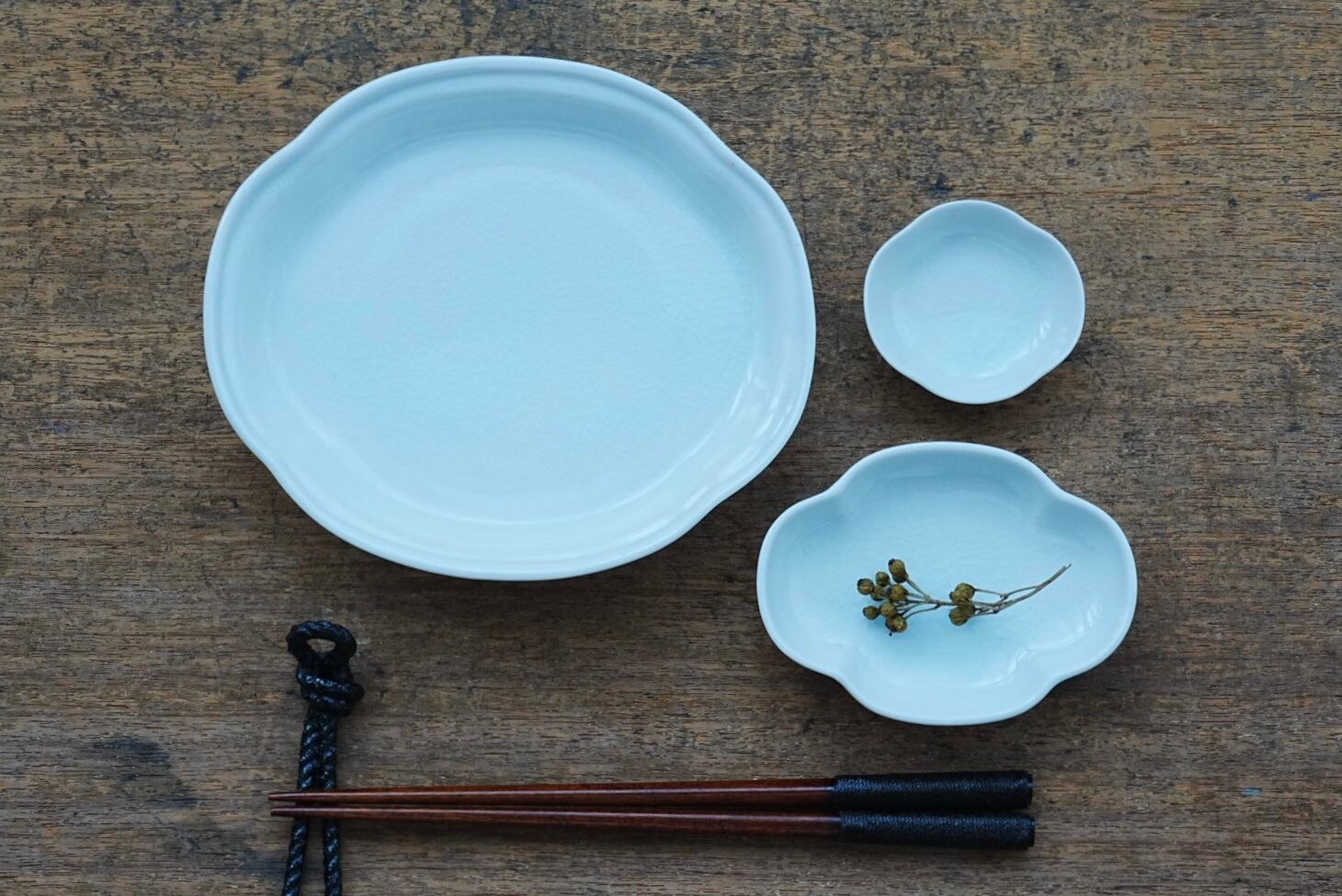 ・プレート表面に、裏面の高台収縮による凹みがある場合があります。土からの成型後の乾燥時・焼成による歪み等です。焼物の特徴とご理解下さい。