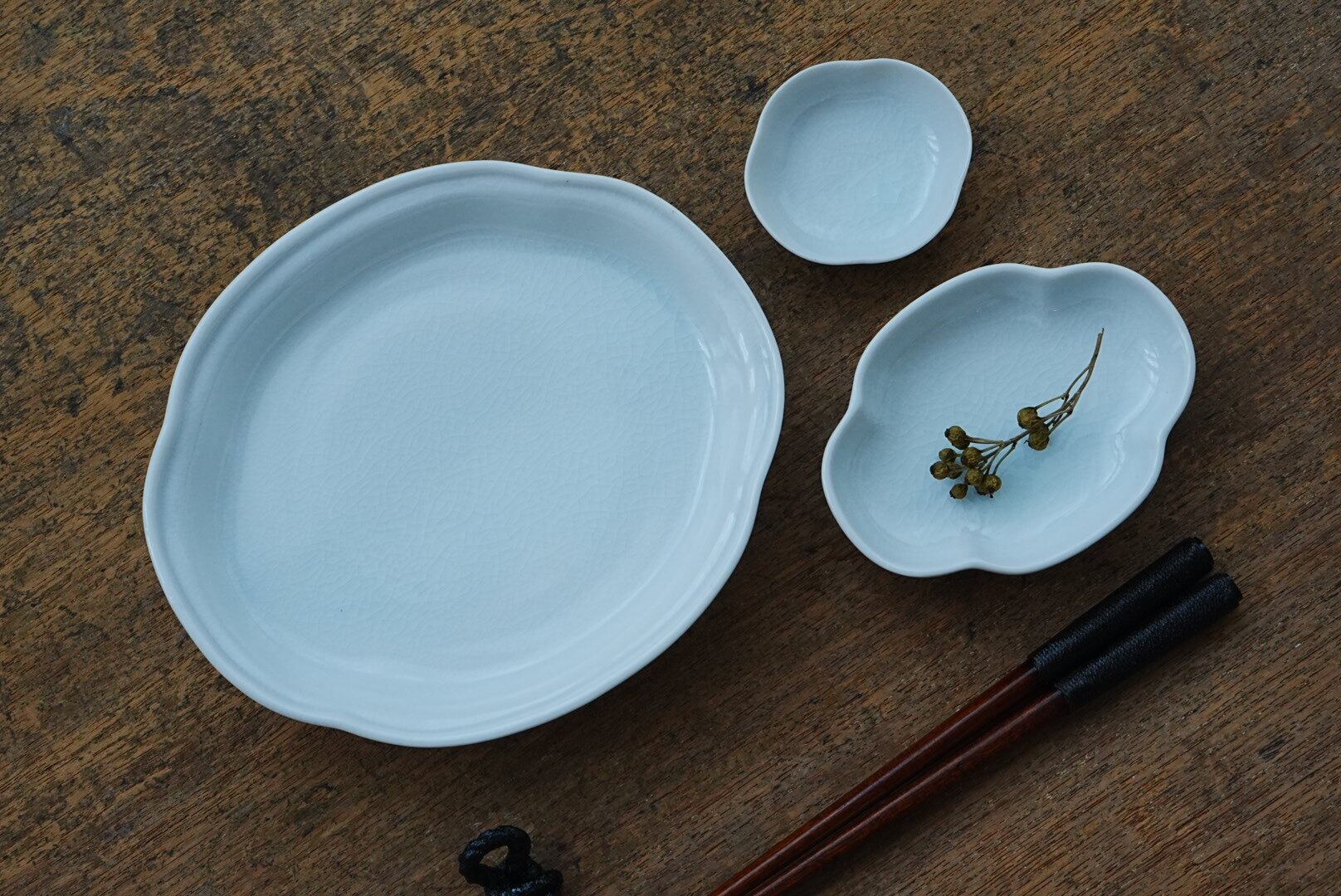 ・プレート表面に、裏面の高台収縮による凹みがある場合があります。土からの成型後の乾燥時・焼成による歪み等です。焼物の特徴とご理解下さい。