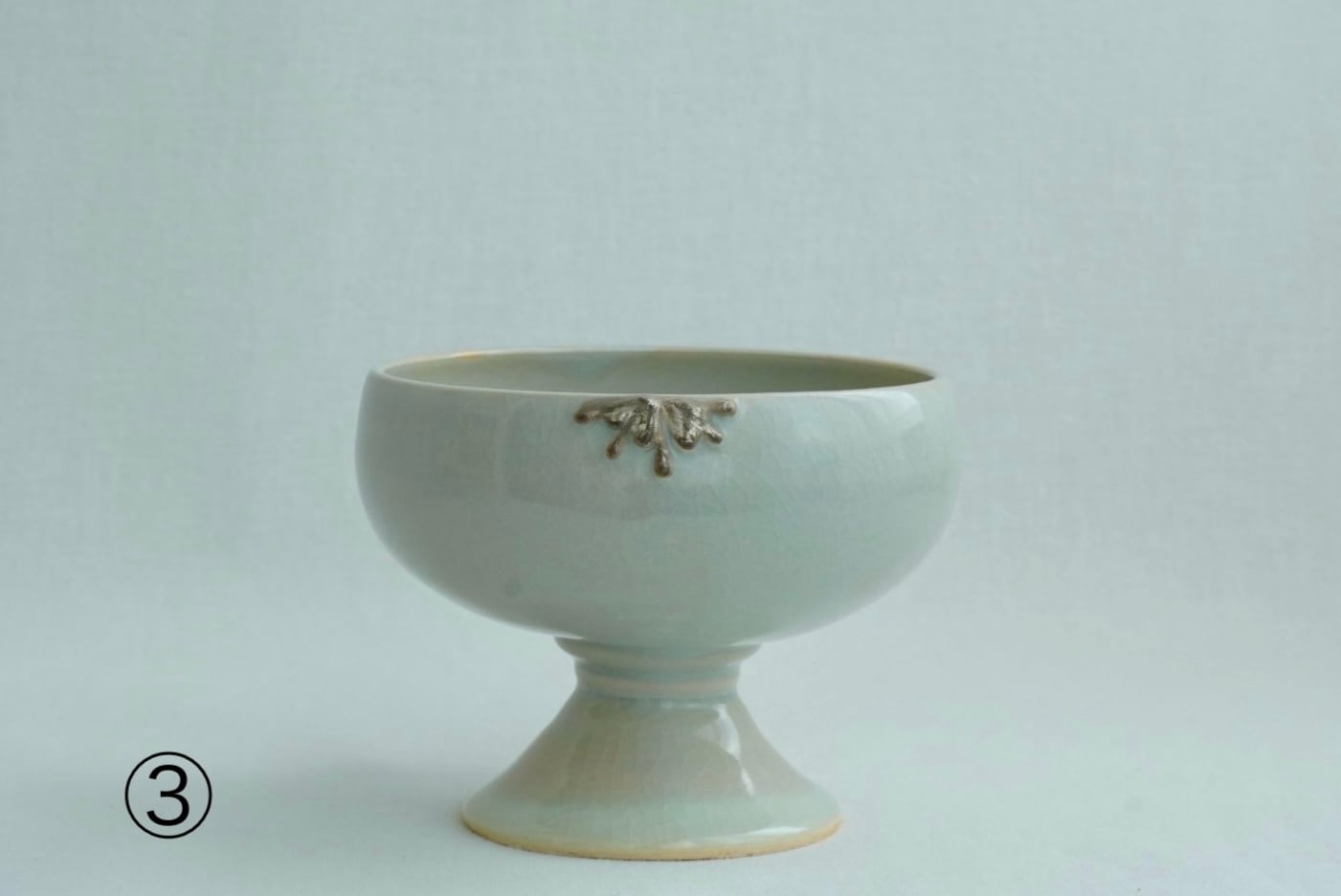 青白磁釉にイッチンと銀彩で加飾したデザートカップです。