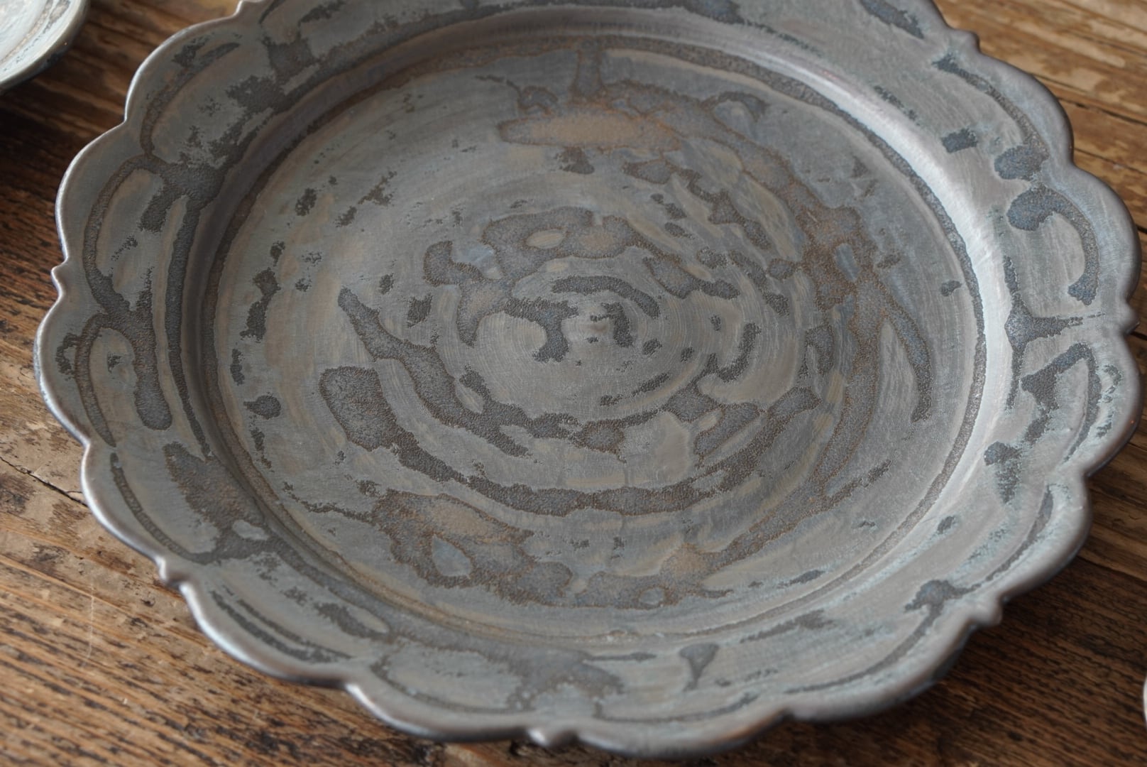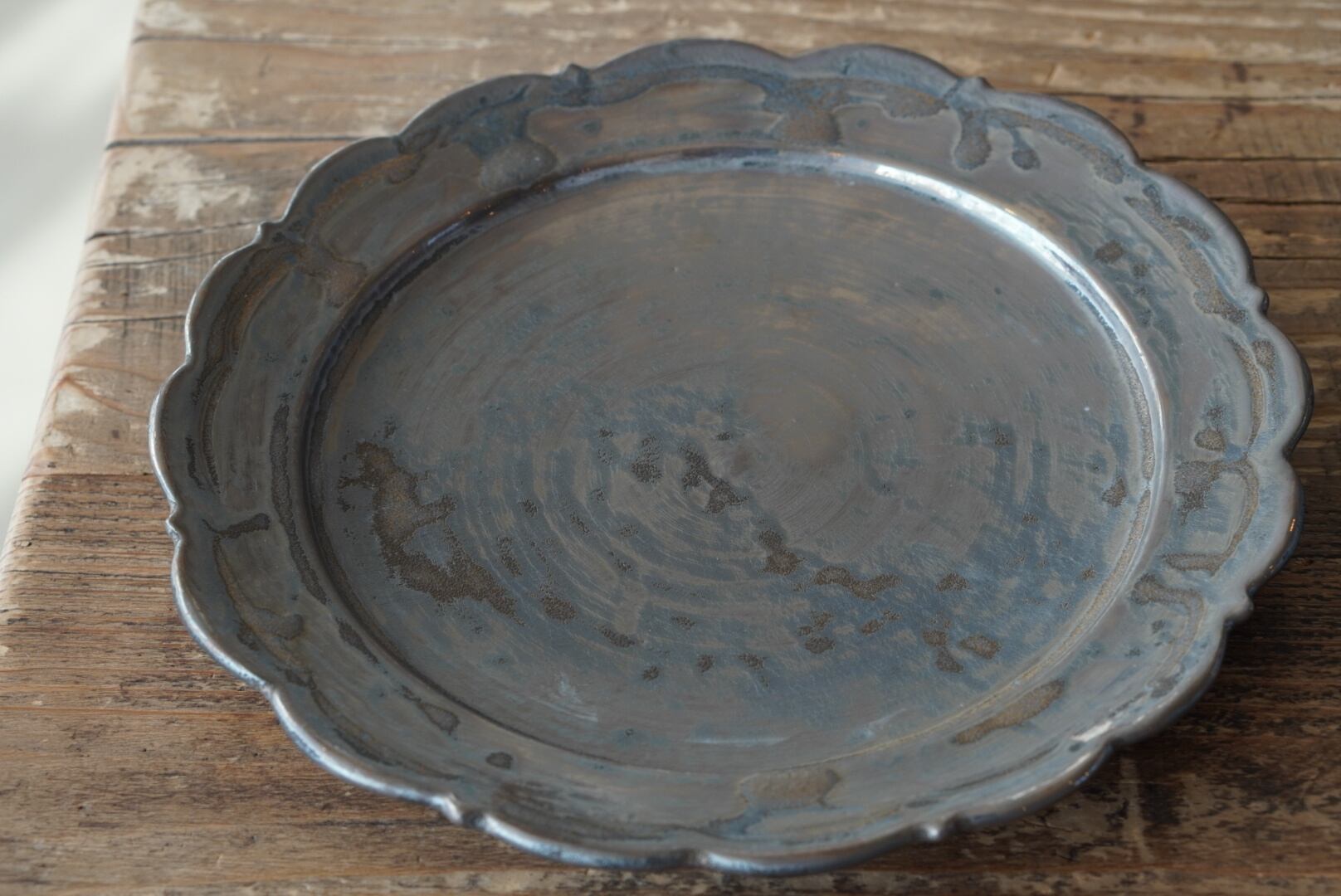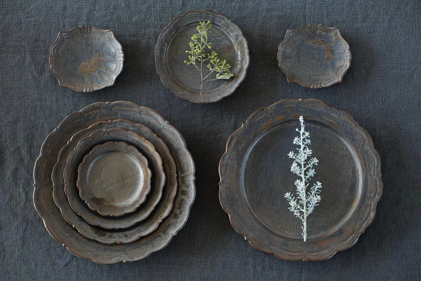 ブロンズ釉のレリーフ皿。