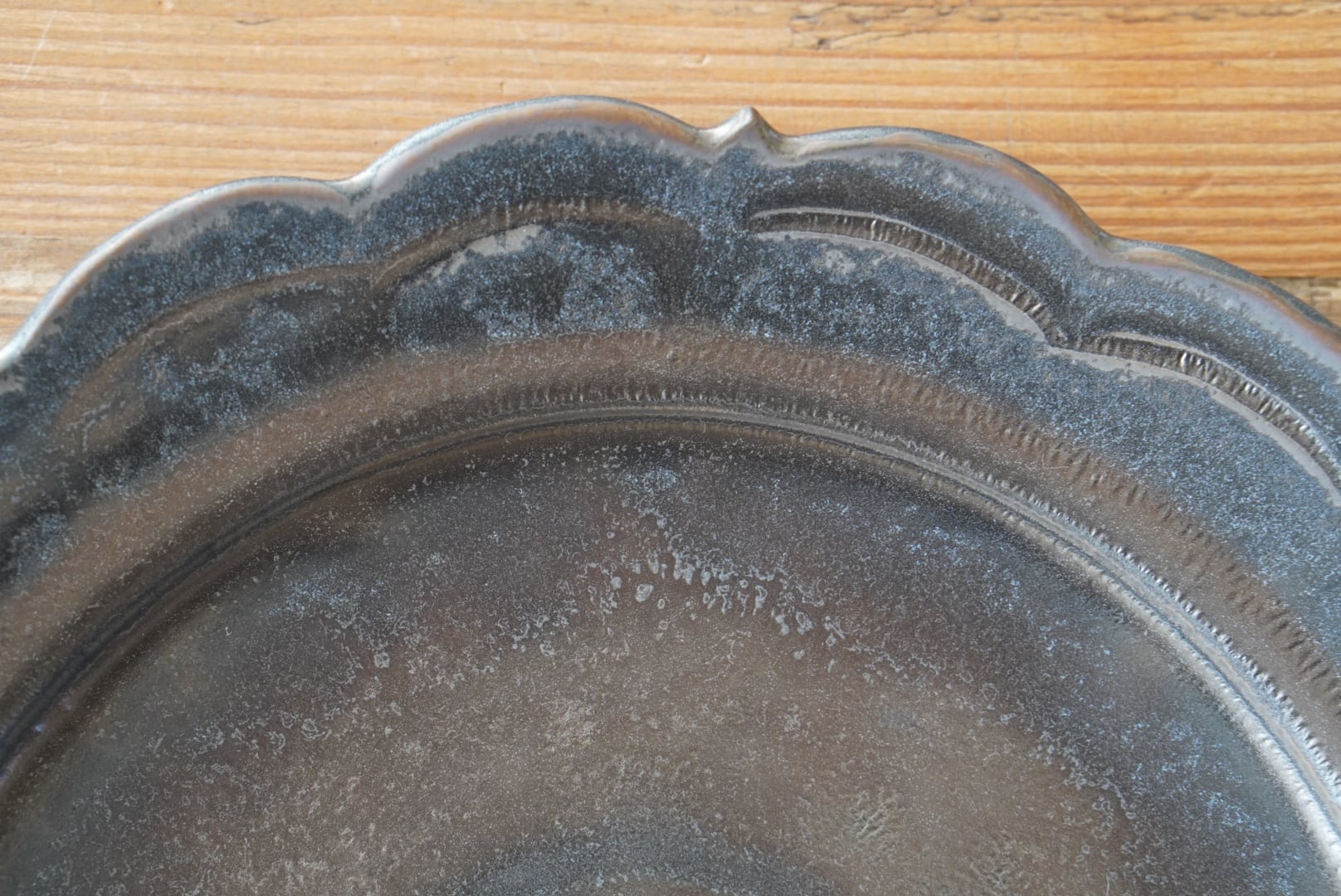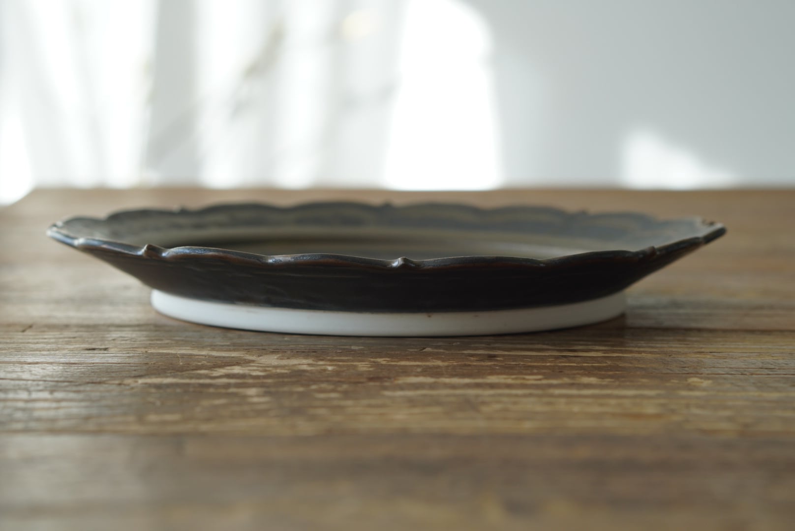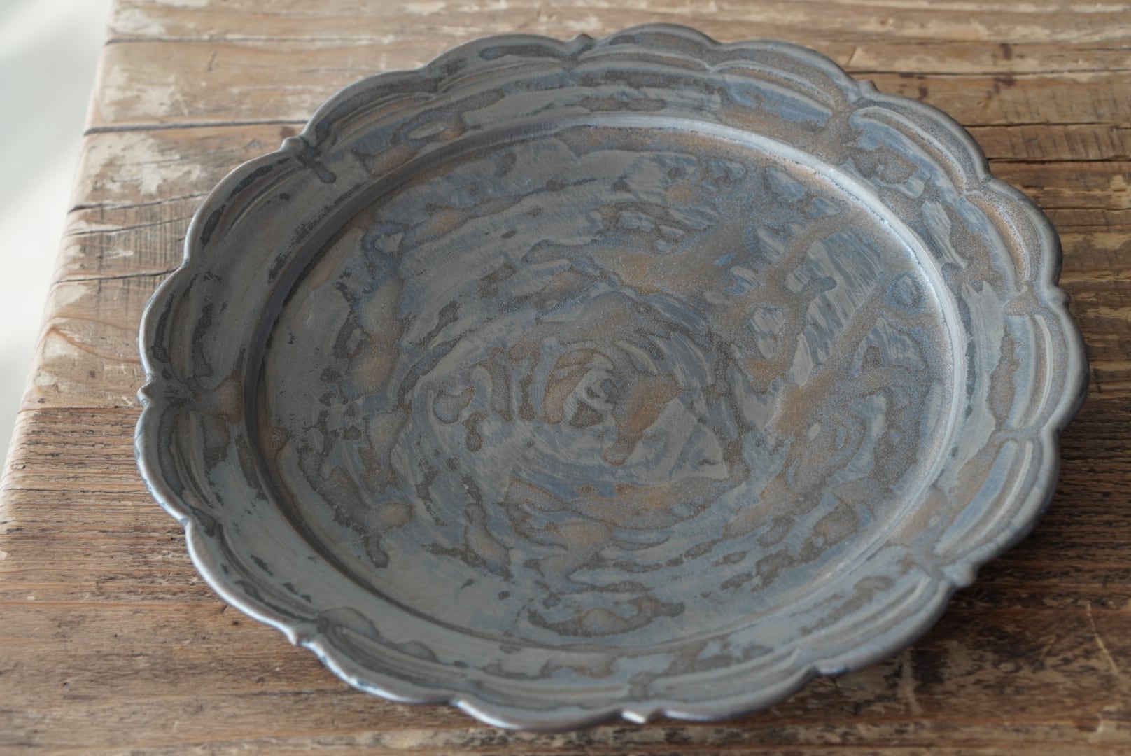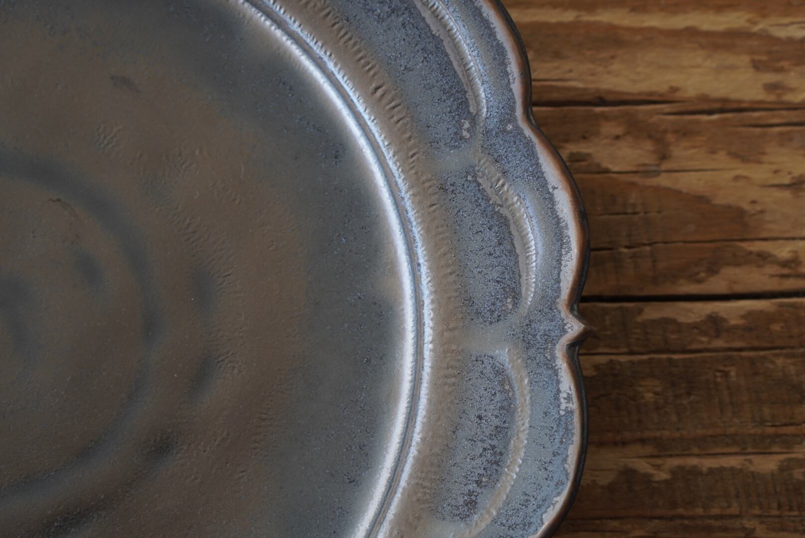 ブロンズ釉のレリーフ皿。