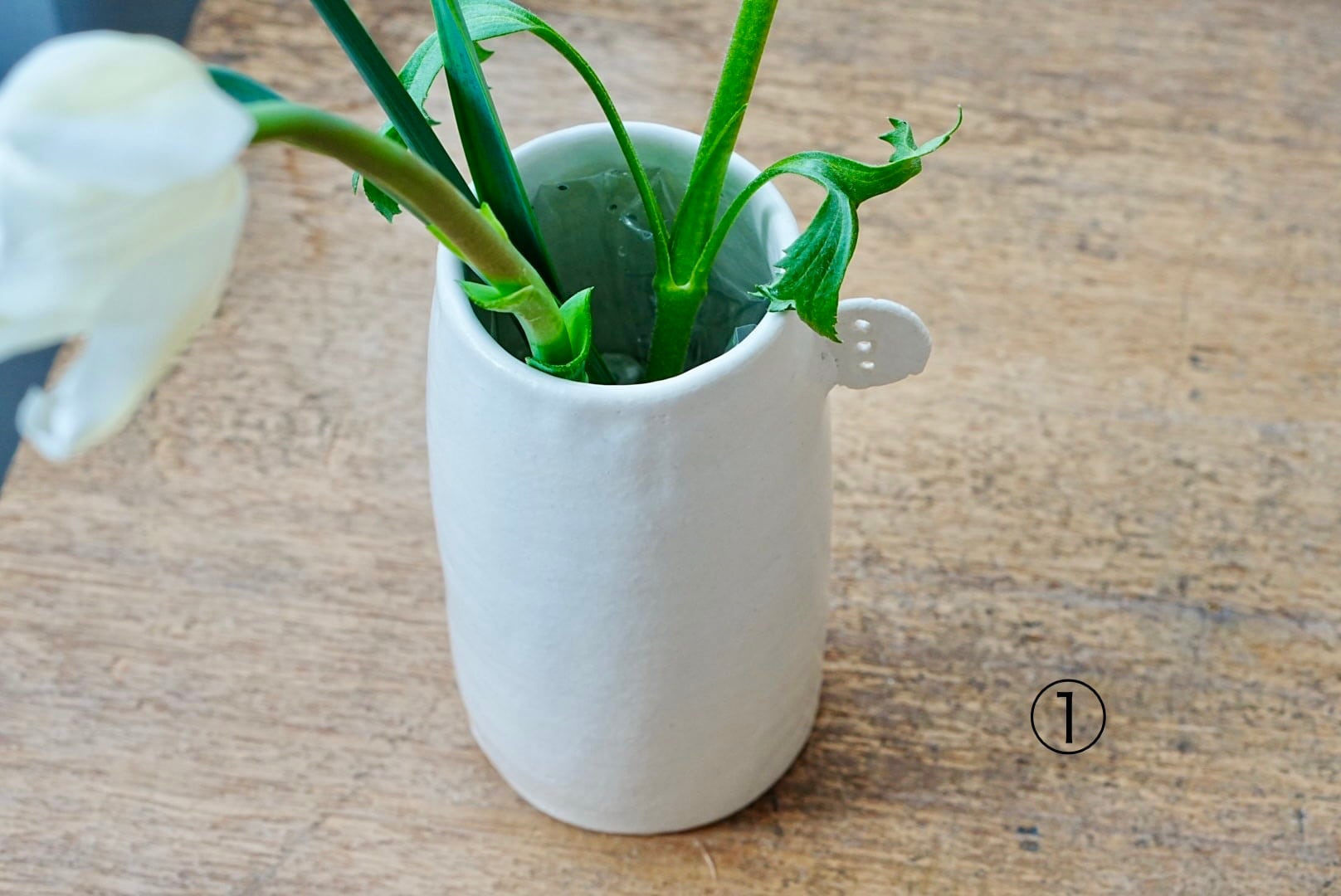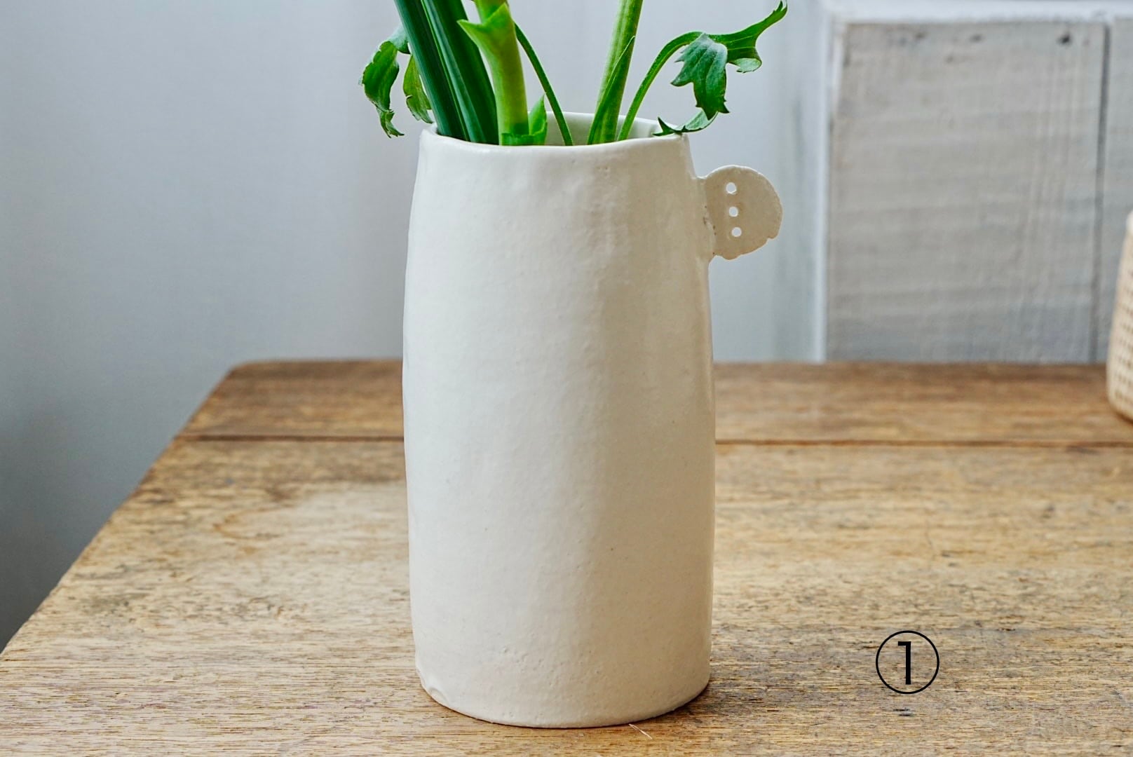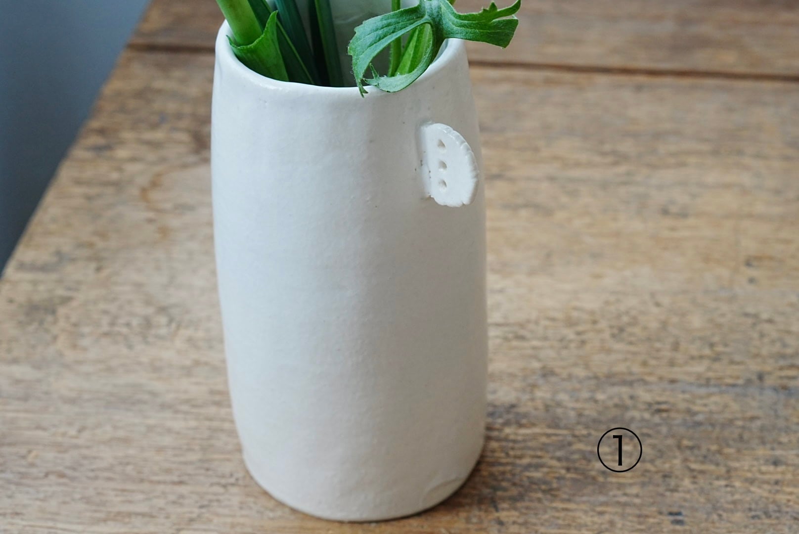 白土に白マット釉がかかった花器